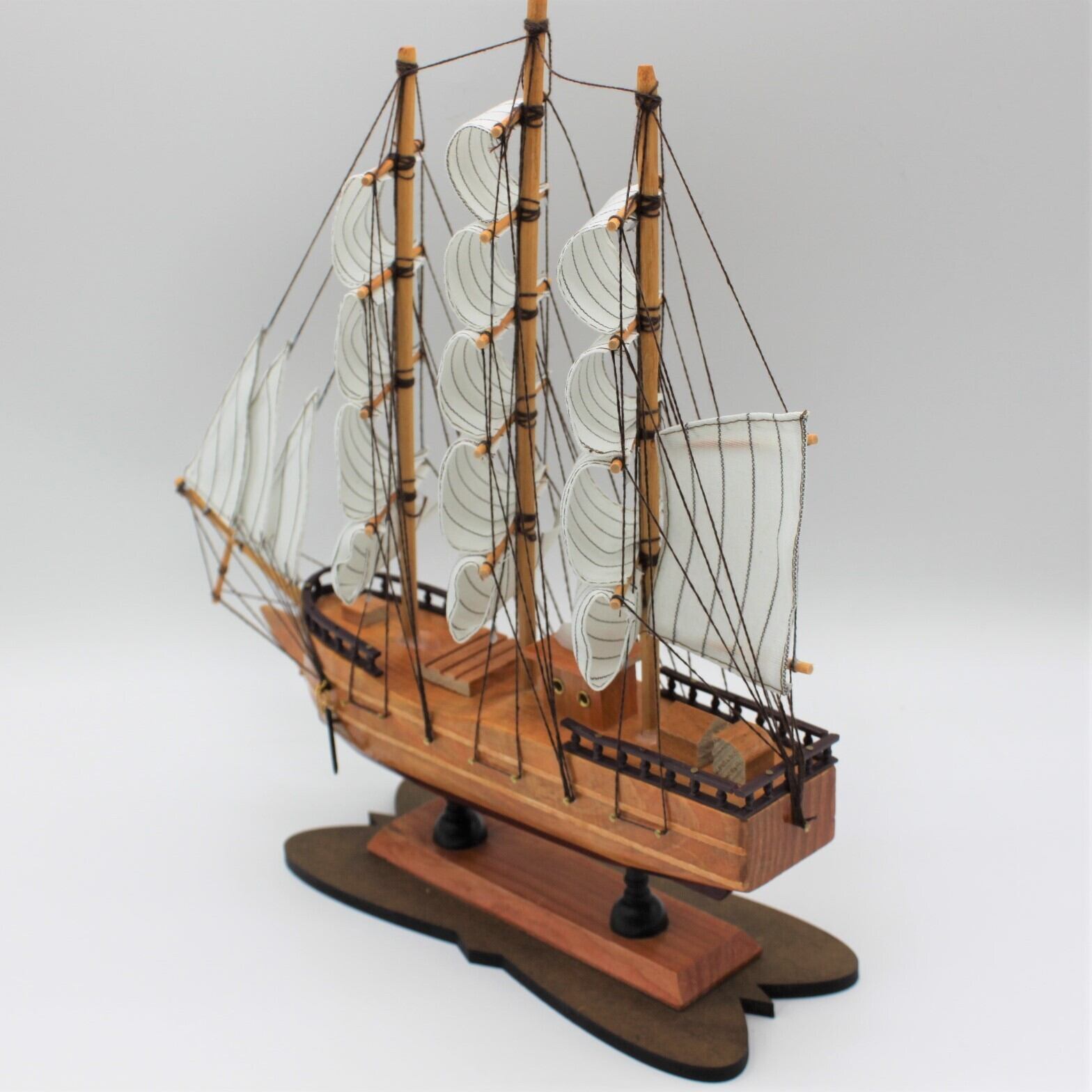 帆船の木製模型です。精巧な細かい作りで存在感が際立つ商品でお部屋リビングのインテリアとして又、記念イベントギフトとして大切な方への贈りものにいかがでしょうか。