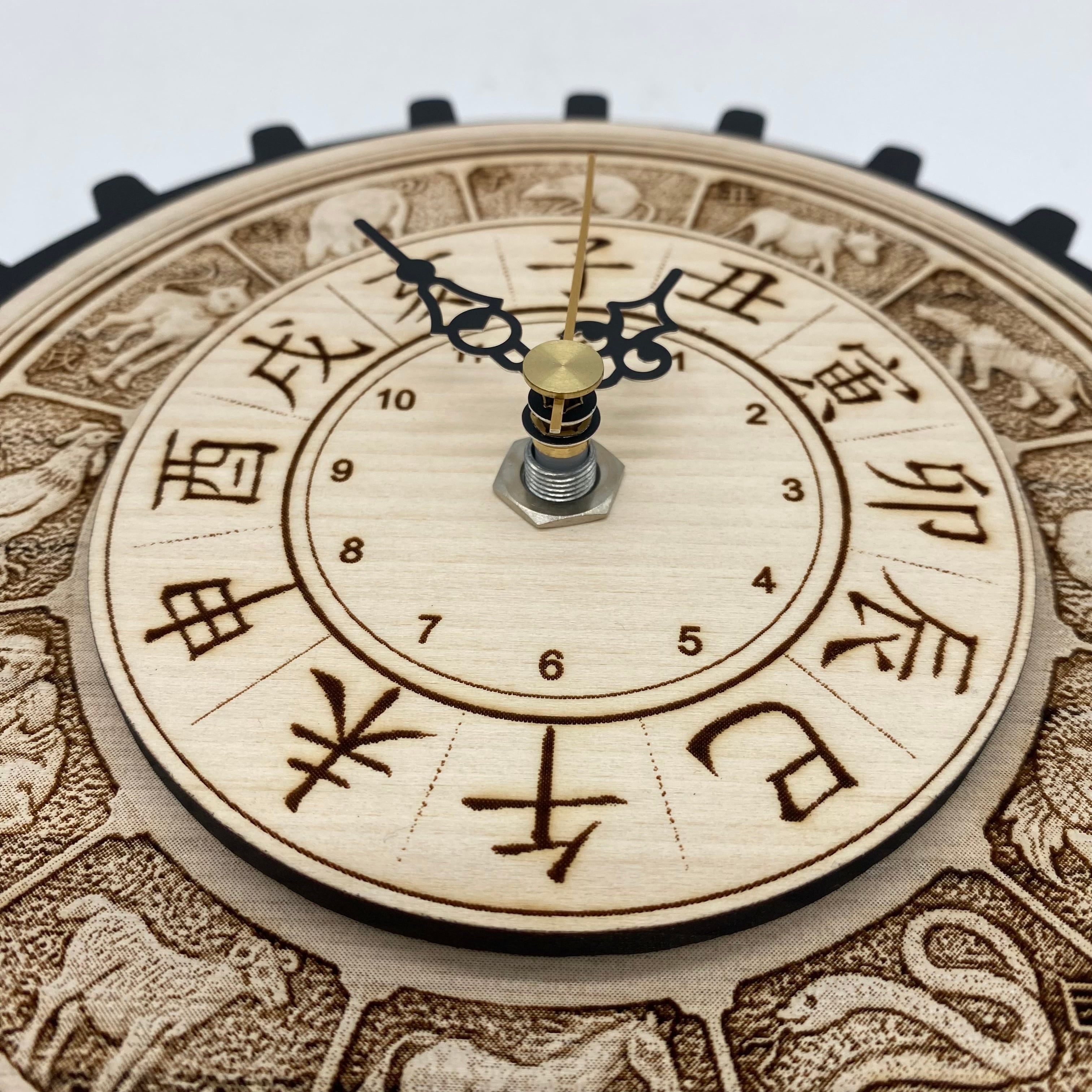 干支をモチーフにしたインテリア掛け時計です。神秘的な十二支を表現して独特な雰囲気を醸し出しております。和室にすごくマッチするデザインですがリビング・玄関等でも問題なく飾る事が出来ます。又、大切な方への贈り物としてもいかがでしょうか。